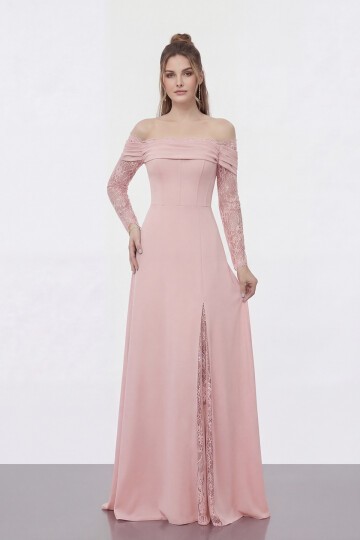 Dantel İşlemeli Yırtmaçlı Uzun Elbise - 2026