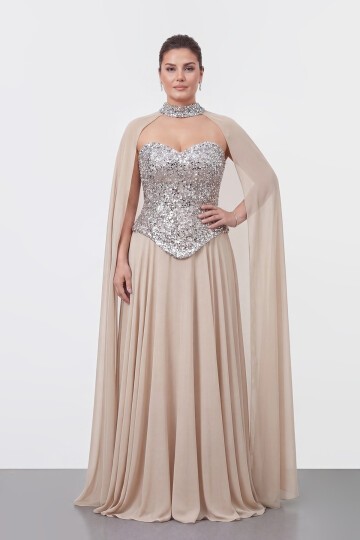 Taş İşlemeli Korse Detaylı Pelerinli Abiye - 2148