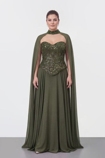 Taş İşlemeli Korse Detaylı Pelerinli Abiye - 2148