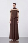 Şal Detaylı Kare Yaka Zarif Uzun Abiye - 2138