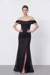 Kayık Yaka Dantelli Midi Elbise - 1586