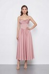 Askılı Drapeli Midi Elbise - 2070