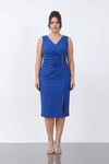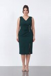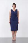 Saten Halter Yaka Drapeli Midi Abiye - 2084
