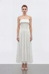 Straplez Taş İşlemeli Midi Elbise - 1850