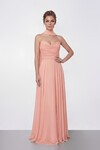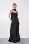 Saten Halter Yaka Drapeli Midi Abiye - 2084