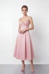 İnce Askılı Taş İşlemeli Midi Abiye - 2048