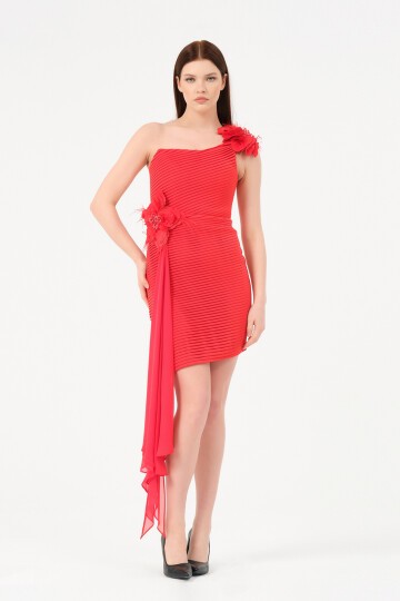 Çiçek Detaylı Pileli Mini Elbise - 1553