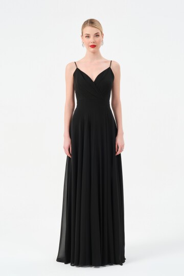 Askılı Drapeli Kruvaze Yaka Elbise - 1524