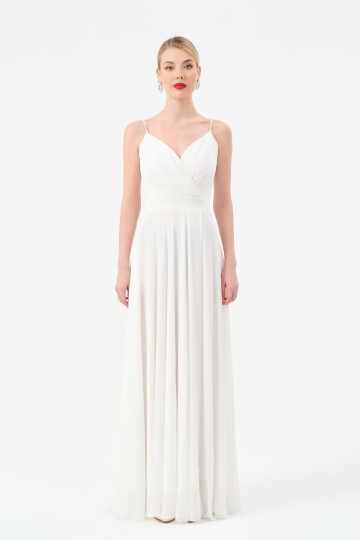 Askılı Drapeli Kruvaze Yaka Elbise - 1524