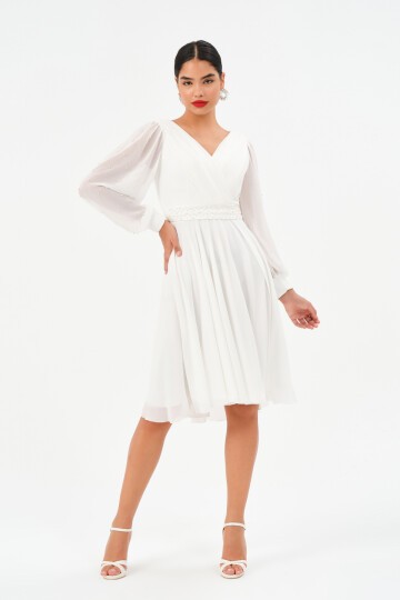İnci İşlemeli Drapeli Midi Elbise - 1512