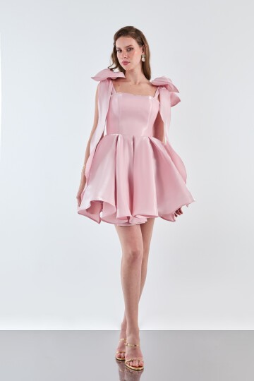 Omuzları Fiyonk Detaylı Mini Elbise - 1812