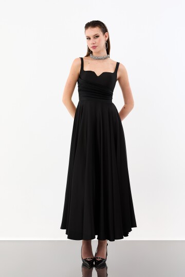V Yaka Drapeli Yüksek Bel Midi Elbise - 1952