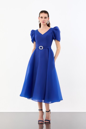 Volümlü Kol Detaylı Şifon Midi Elbise - 1958