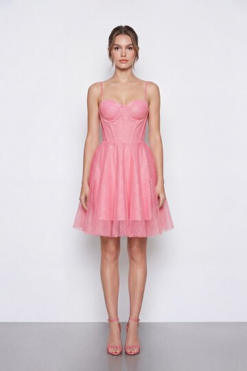 Simli İp Askılı Korse Detaylı Mini Abiye - 2081