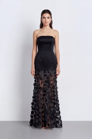 Straplez 3D Aplikeli Transparan Etek Abiye - 2077