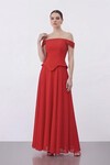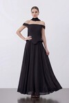Şal Detaylı Kare Yaka Zarif Uzun Abiye - 2138