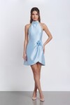 Saten Halter Yaka Çiçek Aksesuarlı Mini Abiye - 2117