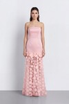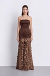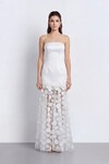 Çiçek Aksesuarlı Straplez Uzun Elbise - 2023