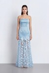 Straplez 3D Aplikeli Transparan Etek Abiye - 2077