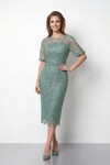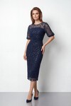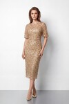 Tamamı İşlemeli Işıltılı Yarım Kol Midi Elbise - 2029