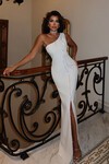 Taş İşlemeli Tek Omuzlu Elbise - 1736