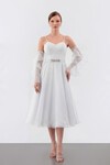 Volümlü Kol Detaylı Şifon Midi Elbise - 1958