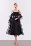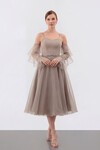 Kalp Yaka Tül Detaylı Elbise - 1818