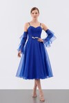 Volan Kollu İp Askılı Midi Elbise - 1993