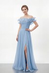 Volan Yakalı Yırtmaçlı Şifon Elbise - 2036