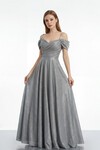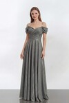 Kol Detaylı Payetli Uzun Elbise - 1720