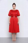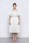 Balon Kollu Kemer Aksesuarlı Midi Abiye - 1621