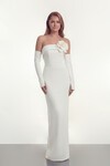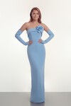 Çiçek Aksesuarlı Straplez Uzun Elbise - 2023