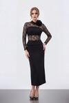 Dantel Büstiyer Detaylı Midi Elbise - 2041