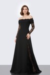 Kayık Yaka Yırtmaçlı Elbise - 1889