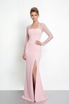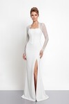 Drapeli Omuz Açık Yırtmaçlı Uzun Abiye - 1496