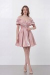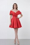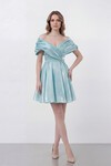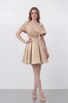 Drapeli Omuz Açık Yırtmaçlı Uzun Abiye - 1496