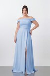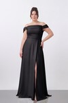 Drapeli Omuz Açık Yırtmaçlı Uzun Abiye - 1496