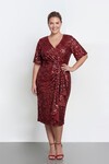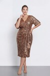 Drapeli V Yaka Büyük Beden Payetli Midi Abiye - 2131