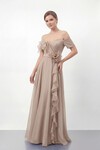 Gül Detaylı Volanlı Şifon Uzun Abiye - 1996