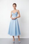 İnce Askılı Taş İşlemeli Midi Abiye - 2048