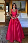 Kalp Yakalı Kemer Detaylı Midi Elbise - 1826