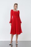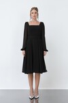 Taş Detaylı Kare Yaka Midi Elbise - 1607