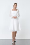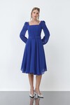 İşleme Detaylı Kare Yaka Midi Elbise - 1535