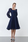 Kare Yaka Kemerli Şifon Elbise - 1916