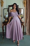 Kalp Yakalı Kemer Detaylı Midi Elbise - 1826