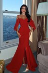 Kol Detaylı Askılı Yırtmaçlı Elbise - 1532