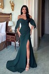 Kayık Yaka Yırtmaçlı Elbise - 1532