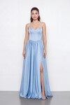 Korse Detaylı Yırtmaçlı Straplez Abiye - 2085