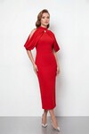 Taş Tokalı Fiyonk Detaylı Midi Elbise - 1831