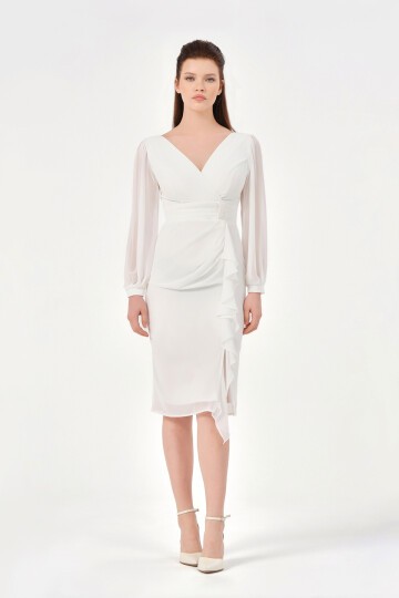 Volan Detaylı Kruvaze Yaka Midi Elbise - 1618